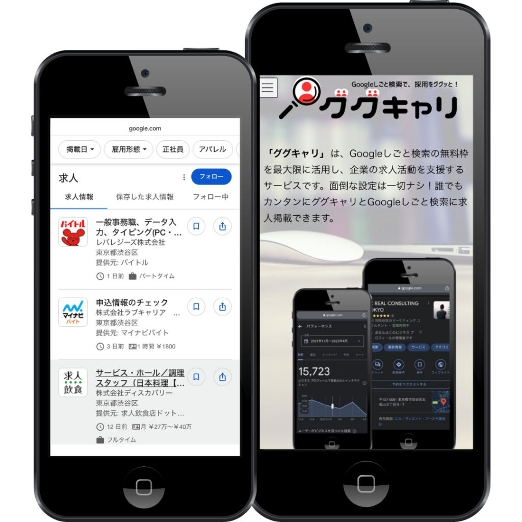 Google検索と連携した求人検索サービスです。求職者がGoogleで「仕事」に関するキーワードを入力すると、検索結果の上部に関連する求人情報が表示されます。