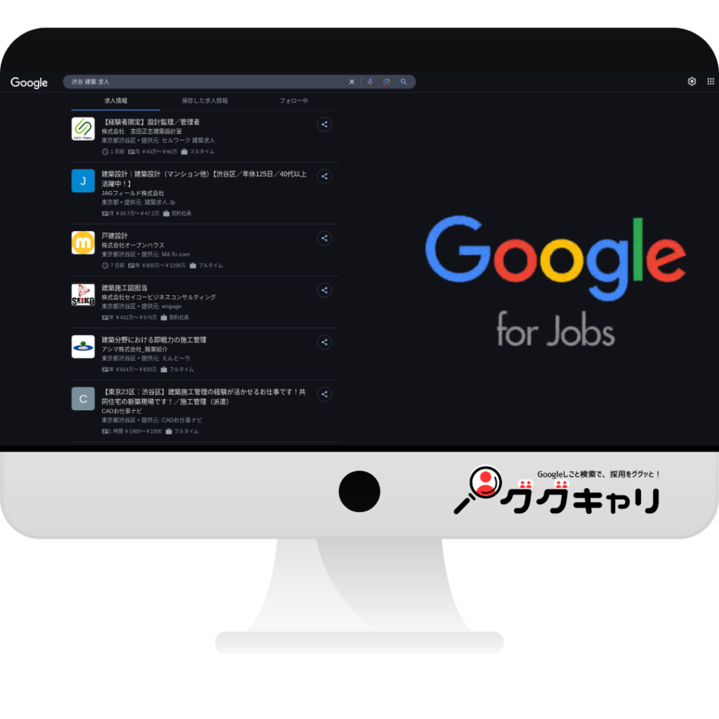 「ググキャリ」は、Googleしごと検索の無料枠を最大限に活用し、企業の求人活動を支援するサービスです。中小企業や個人事業主の求人活動に、ぜひお役立てください!「ググキャリ」で、採用活動をもっとスマートに!